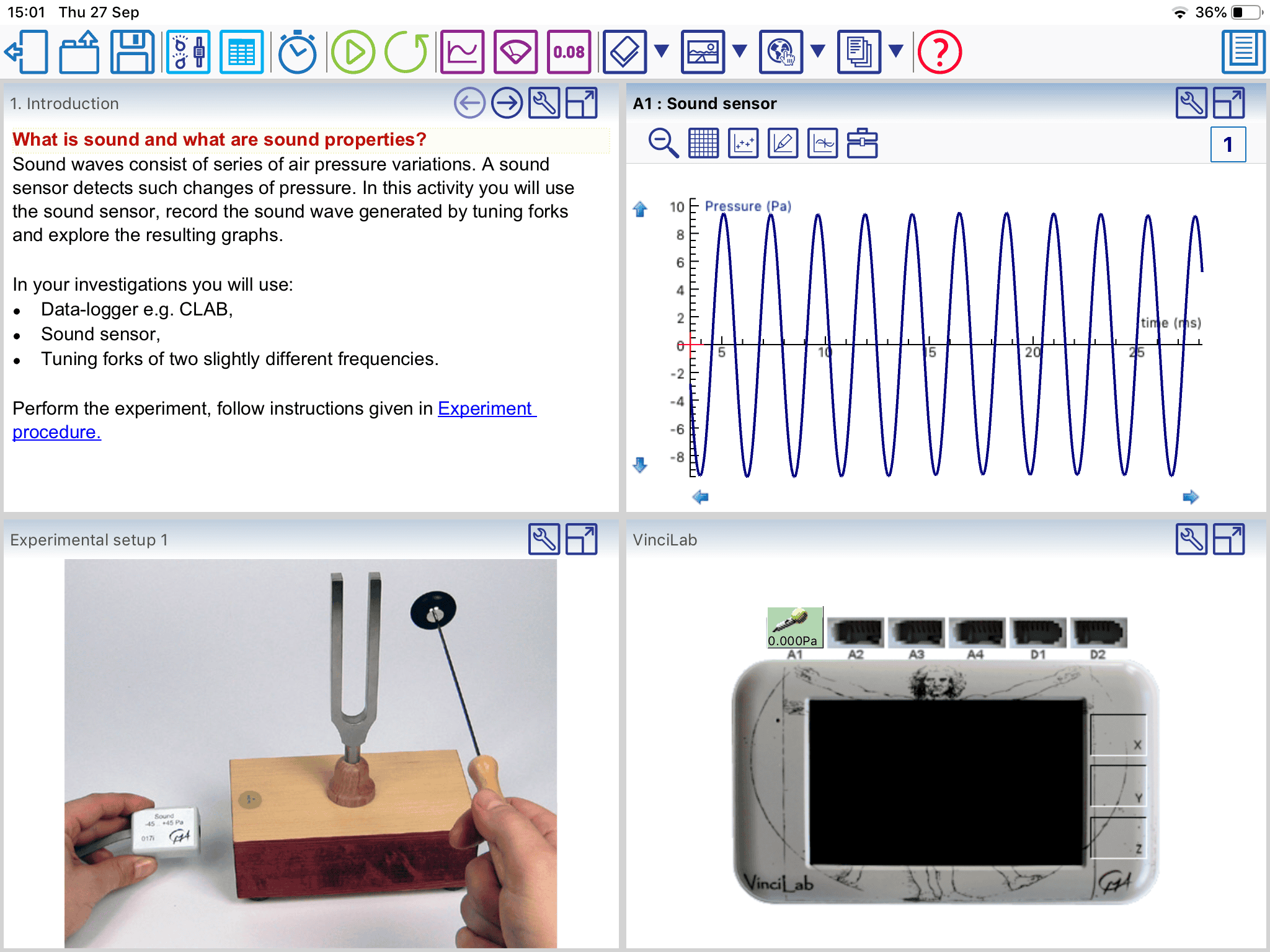 In the update of Coach 7 App for tablets (version 7.2) the functionality of measurement is added. It is possible to measure: on iPad with: – with VinciLab, wireless via Wi-Fi, and – an internal tablet accelerometer, Android tablets with: – VinciLab, wireless via Wi-Fi – €Lab, €Sense, CLAB, CoachLabII+ via a USB port (a Micro USB OTG-hub or a cable is needed to