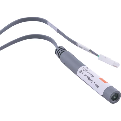 For comparison, on a cloudy day, the light intensity is approximately 8 W/m². The sensor is directional, with a maximum measurement value when the sensor tip is pointed at the light source. The sensor is sensitive to visible light and infrared and can be used to measure visible light sources and IR light sources.