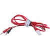 To measure a potential difference between two points in a circuit, connect the red and black plugs to the two points. A positive reading means the red plug is at a higher potential than the black plug.